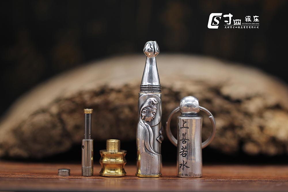 寸四銀莊大師精品便攜式煙嘴,工藝精湛,可拆卸清洗方便,攜帶方便,雕花立體,男神必備款。