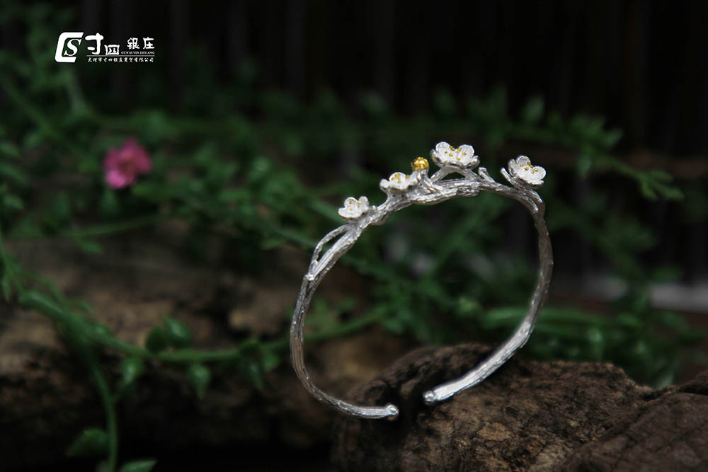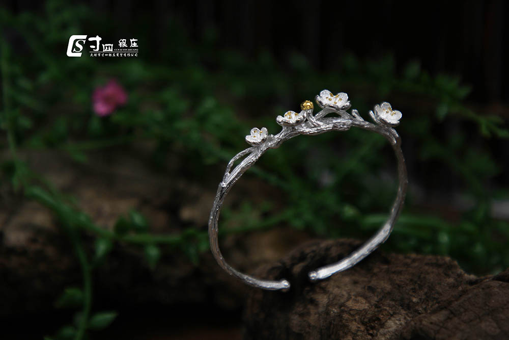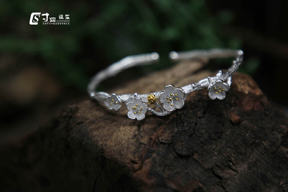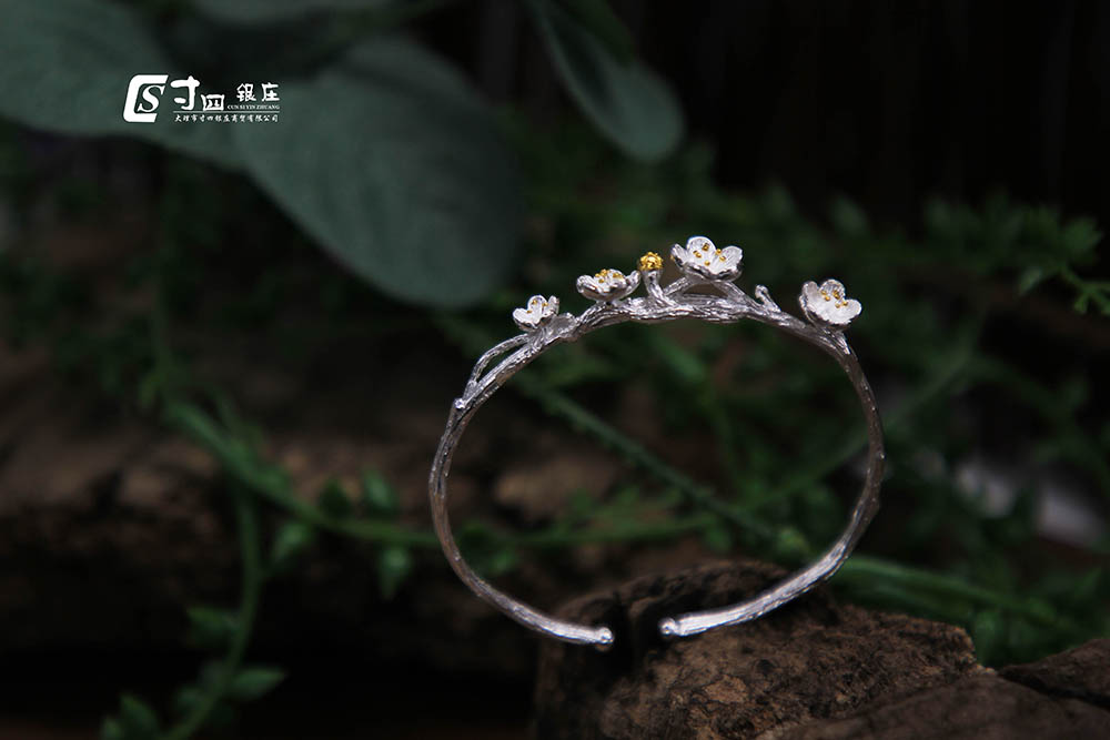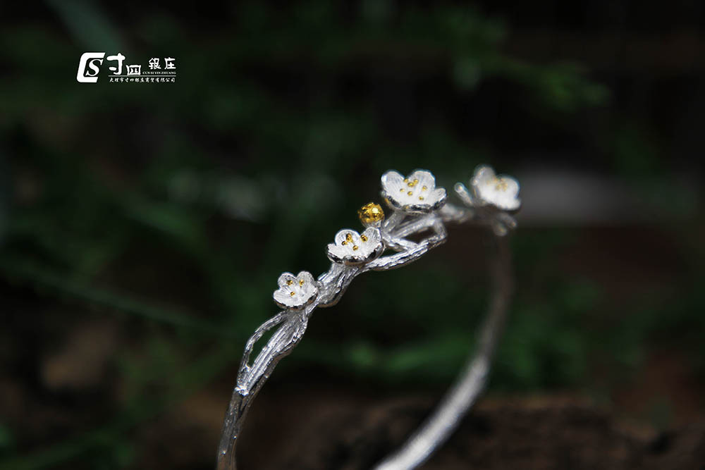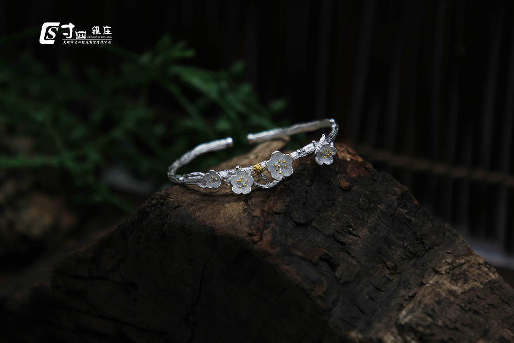 寸四銀莊梅花手鐲,精致高雅,立體鎏金工藝,女神必備款