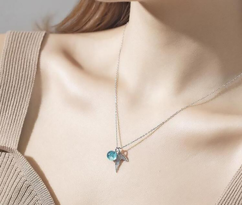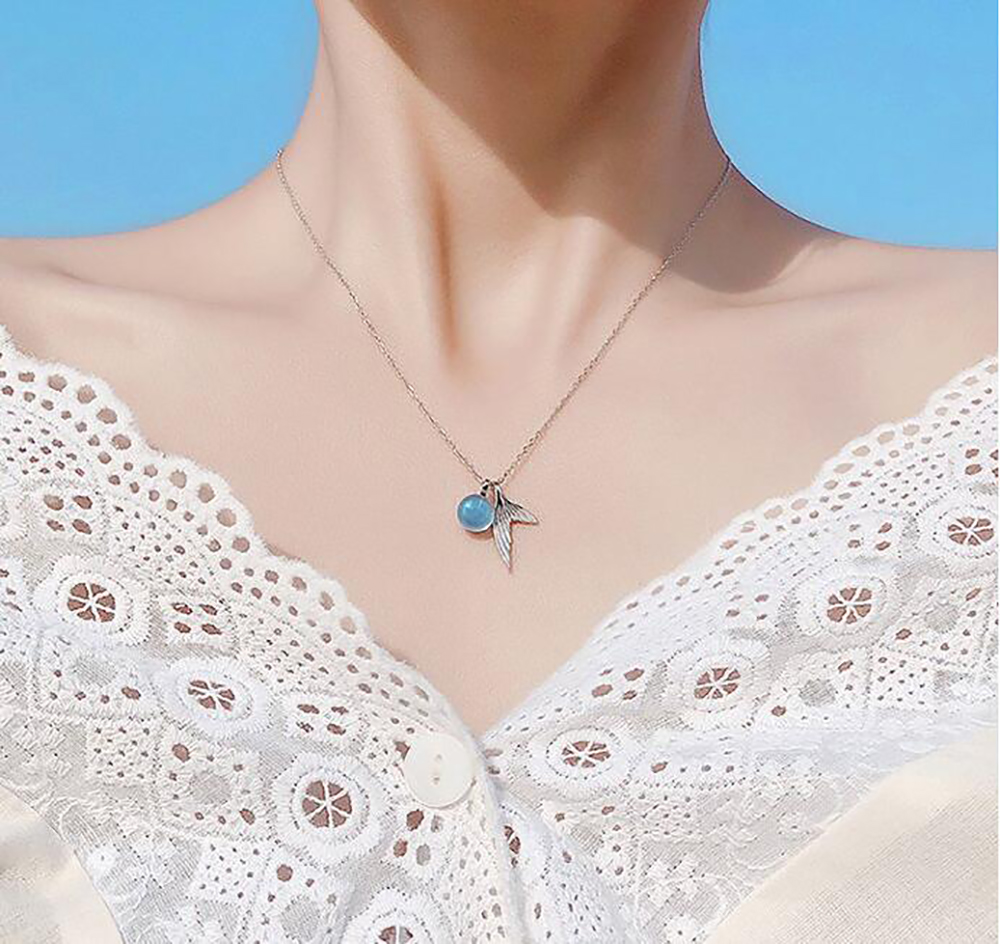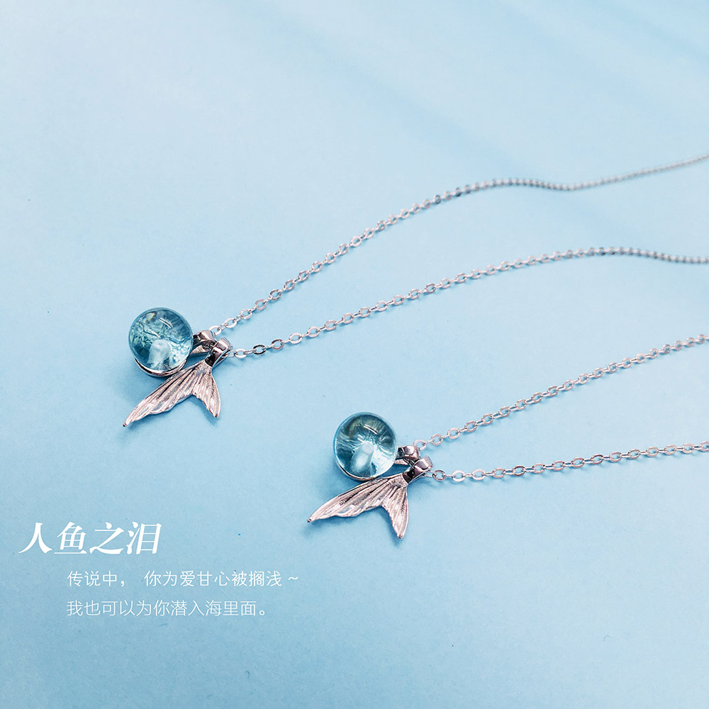 寸四銀莊人魚(yú)眼淚項(xiàng)鏈,工藝精湛,純銀加藍(lán)水晶設(shè)計(jì)。